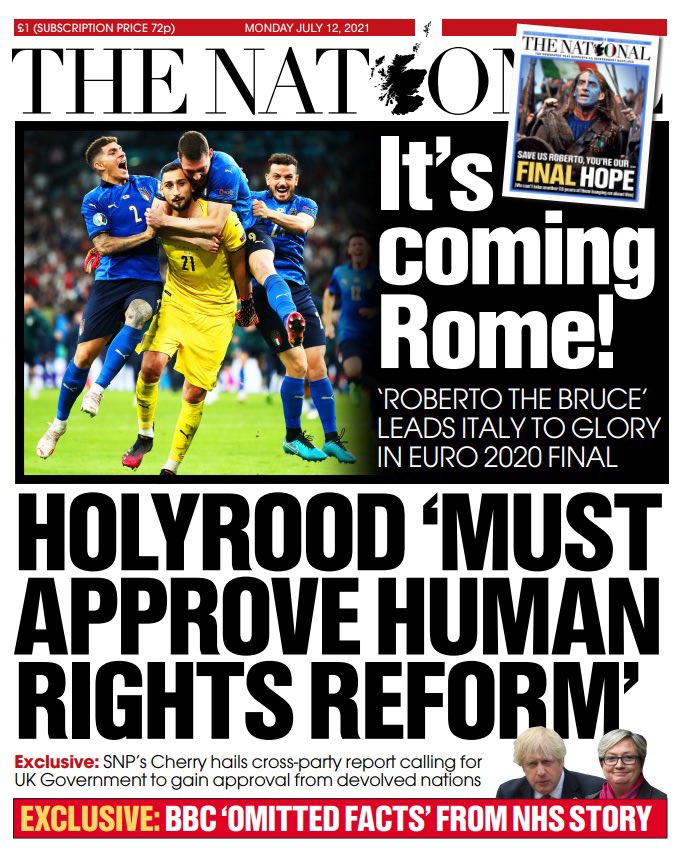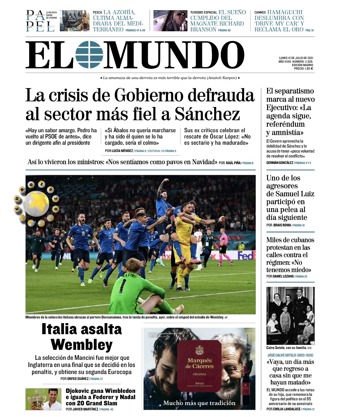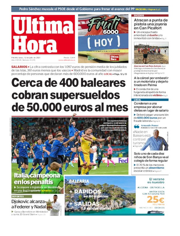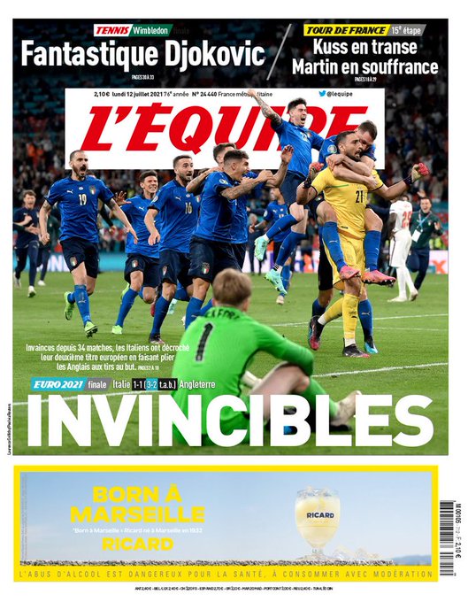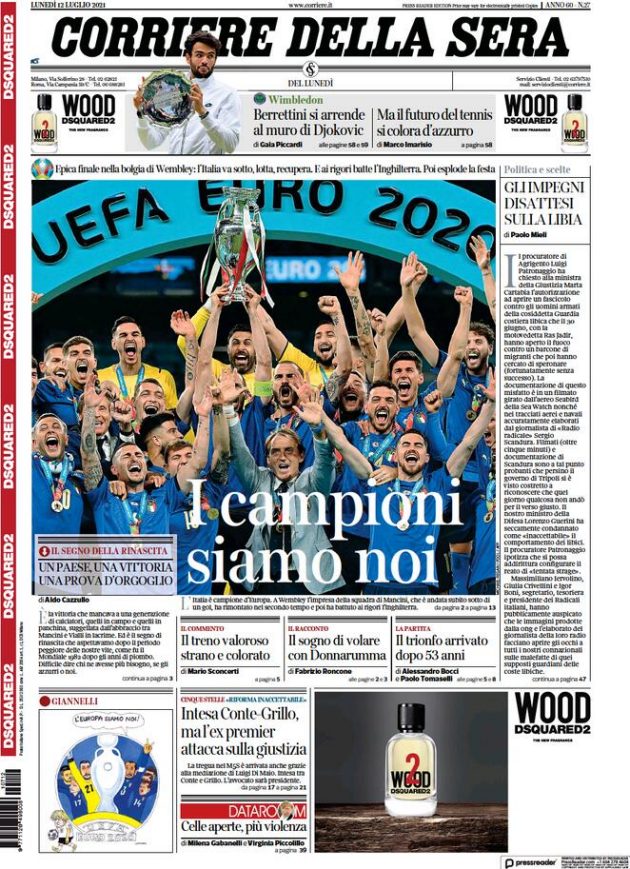 Tony Cittadino (Mallorca).- La segunda Eurocopa en la historia de Italia fue reseñada en primera plana en los diarios más importantes del mundo. La Azzurra sumó su segundo trofeo a las vitrinas, luego del obtenido en 1968, tras imponerse a Inglaterra en los penales (3-2). Ambas selecciones empataron a un gol en 120 minutos, en final disputada en el mítico estadio de Wembley.