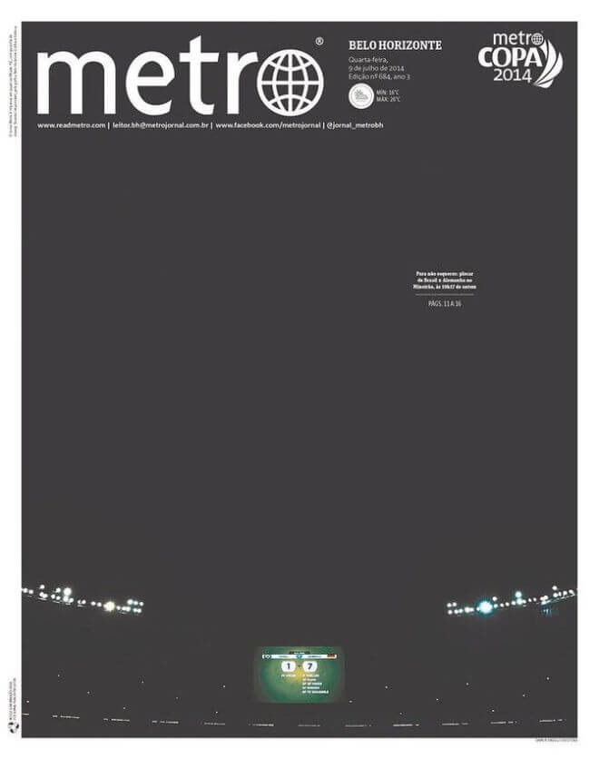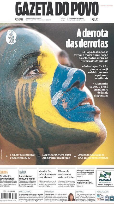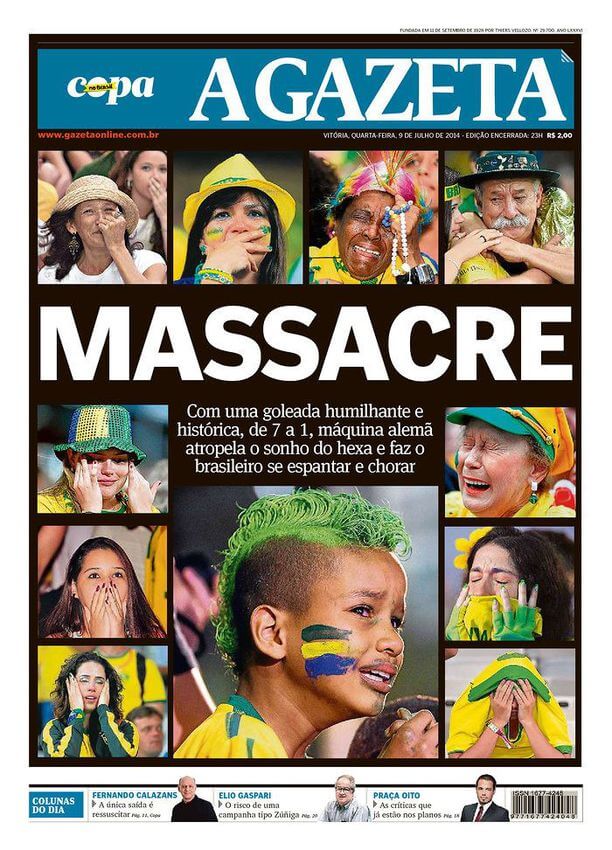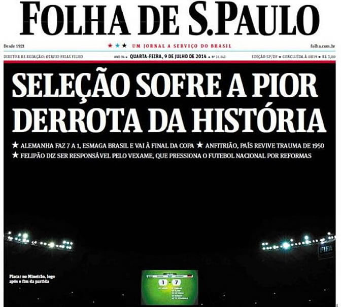 Otro periódico crítico fue Folha de Sao Paulo, al reseñar que Alemania aplastó a Brasil. “Por segunda vez en la historia, la selección brasileña perdió la oportunidad de consagrarse campeón mundial jugando en casa. En el Mundial de 1950 el resultado de 2-1 a favor de Uruguay tuvo contornos trágicos, mientras que en 2014 la goleada por 7-1 fue marcada por la humillación”.