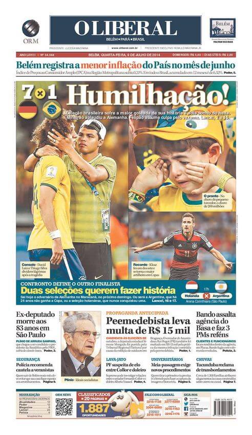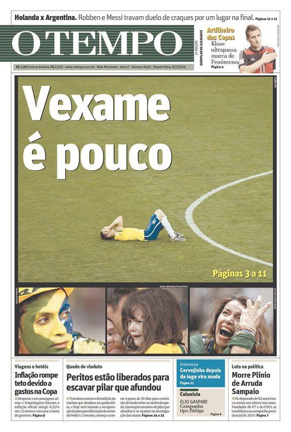 El diario O Globo indició que fue la peor derrota en casa en su historia. “La selección brasileña sufrió ayer la peor vejación en sus cien años de historia. La derrota por 7-1 frente a Alemania fue la más humillante desde el 21 de julio de 1914, cuando actuó por primera vez”, agregó EFE.