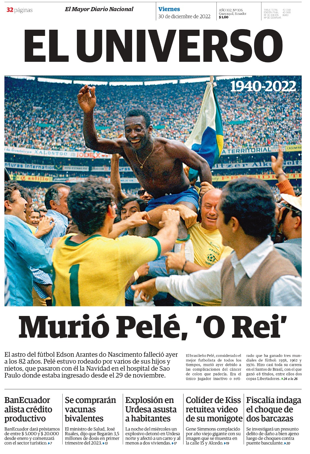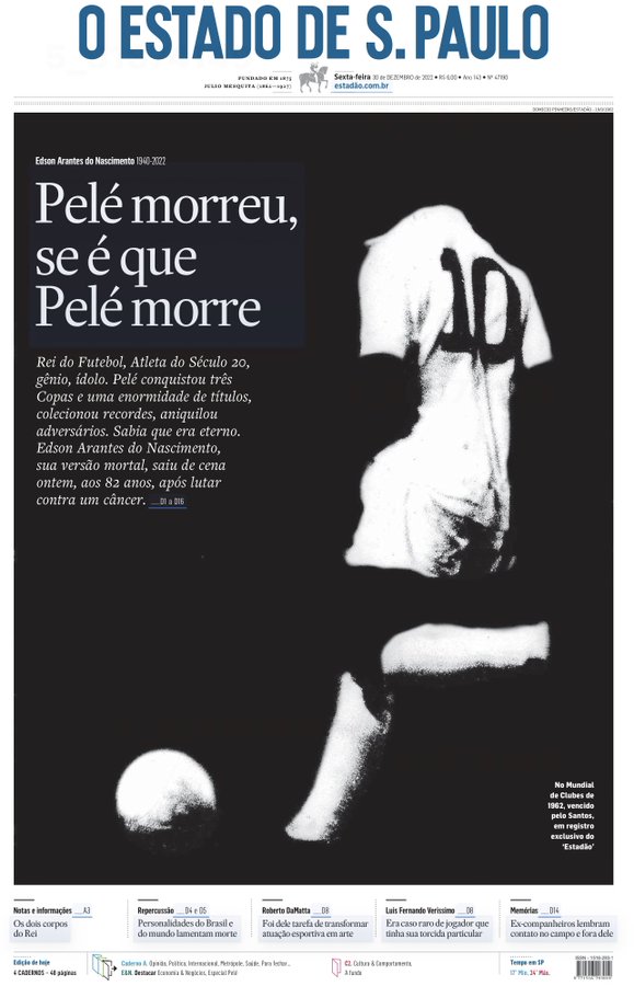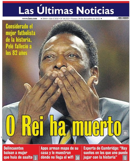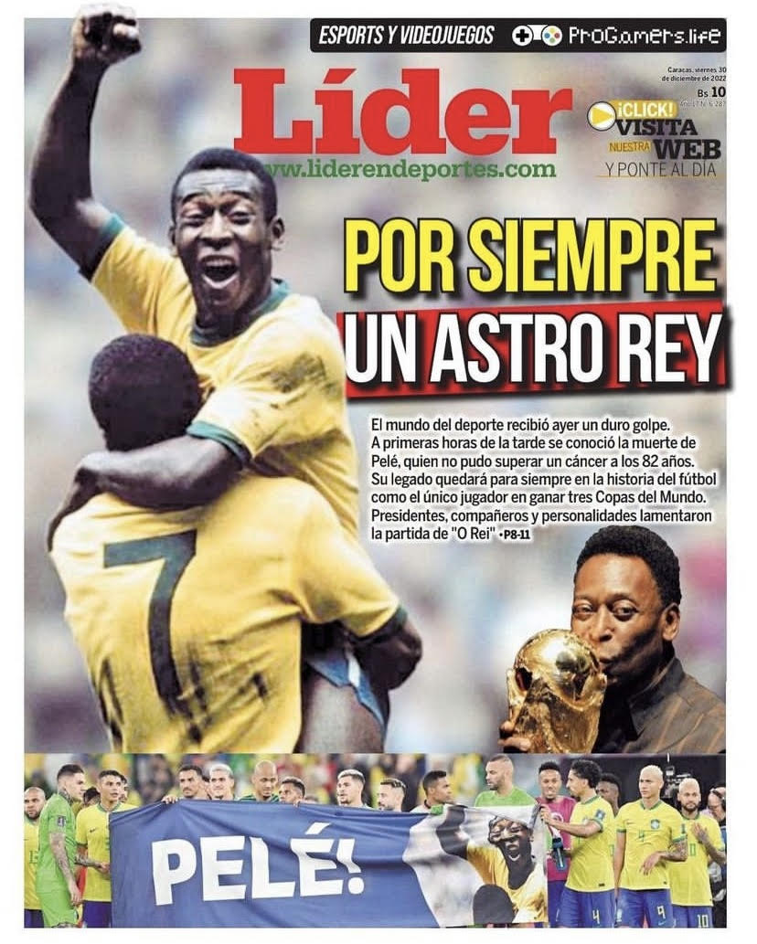 Tony Cittadino (Madrid).- Como era de esperarse, la muerte de Pelé el 29 de diciembre causó conmoción mundial y la prensa le dio un último adiós a «O Rei», dedicándole sus principales titulares en todo el mundo.