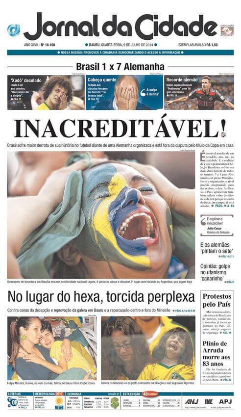 Otro periódico crítico fue Folha de Sao Paulo, al reseñar que Alemania aplastó a Brasil. “Por segunda vez en la historia, la selección brasileña perdió la oportunidad de consagrarse campeón mundial jugando en casa. En el Mundial de 1950 el resultado de 2-1 a favor de Uruguay tuvo contornos trágicos, mientras que en 2014 la goleada por 7-1 fue marcada por la humillación”.