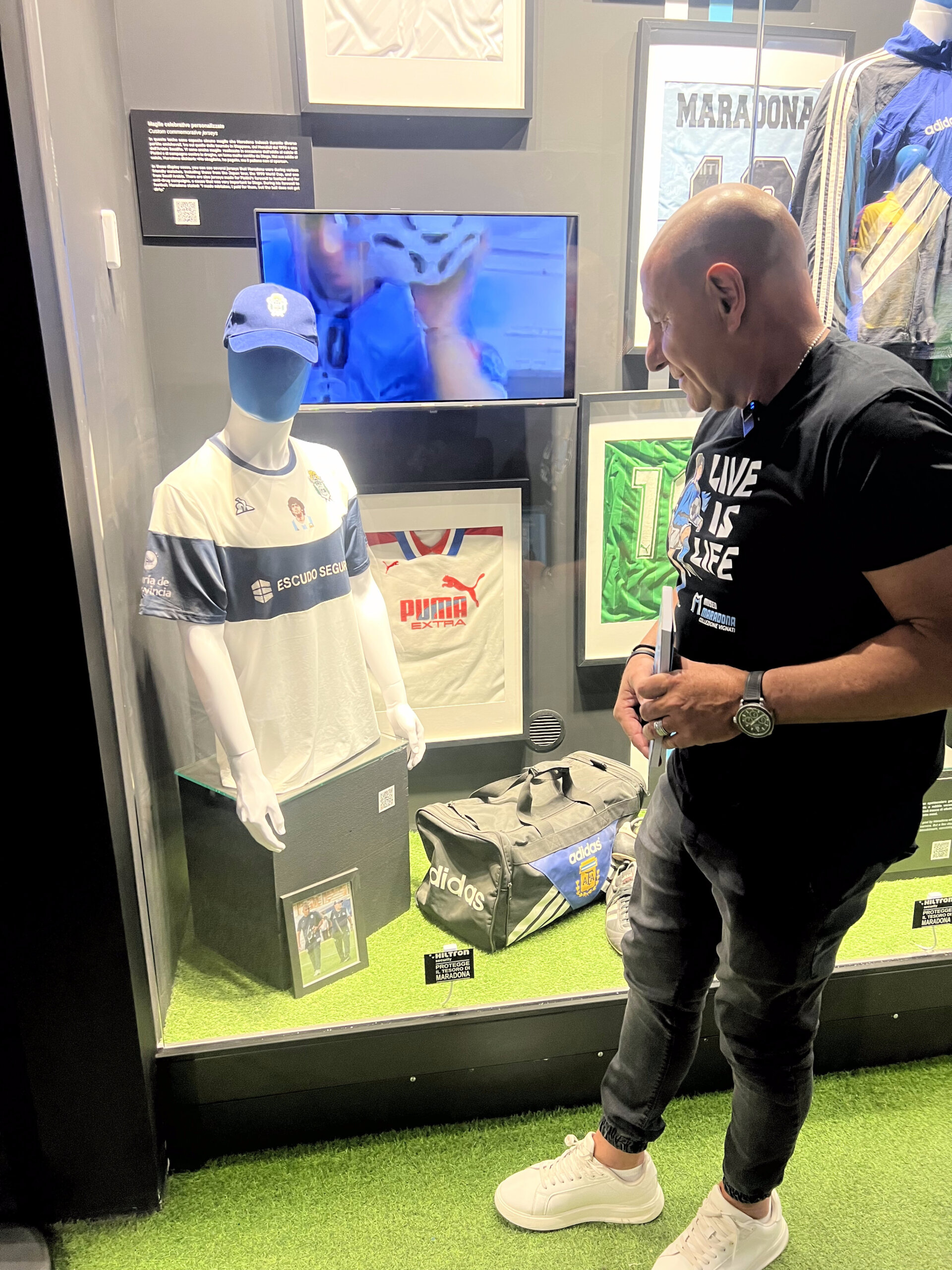 Vignati, tiene verdaderas joyas en la instalación. No hay valor monetario que pueda cuantificar lo que guarda con recelo y orgullo, porque son objetos que el propio Maradona le regaló a la familia o a él. Desde el contrato firmado con el Napoli en 1984, hasta diversas camisas, el banquillo donde se sentaba Maradona en el camerino o la mítica chaqueta con la que hizo el calentamiento con la canción Live is Life.