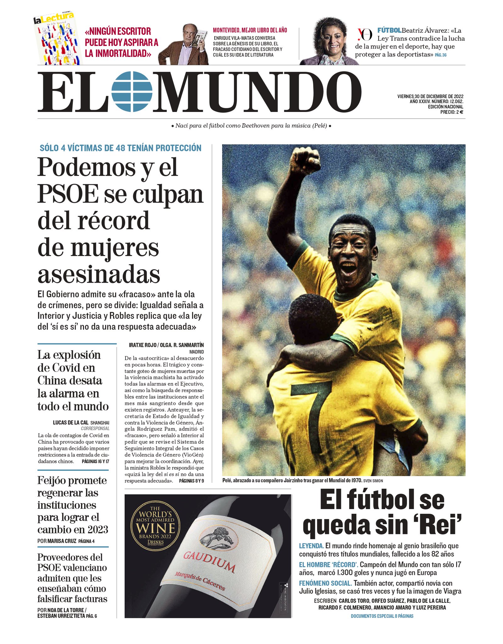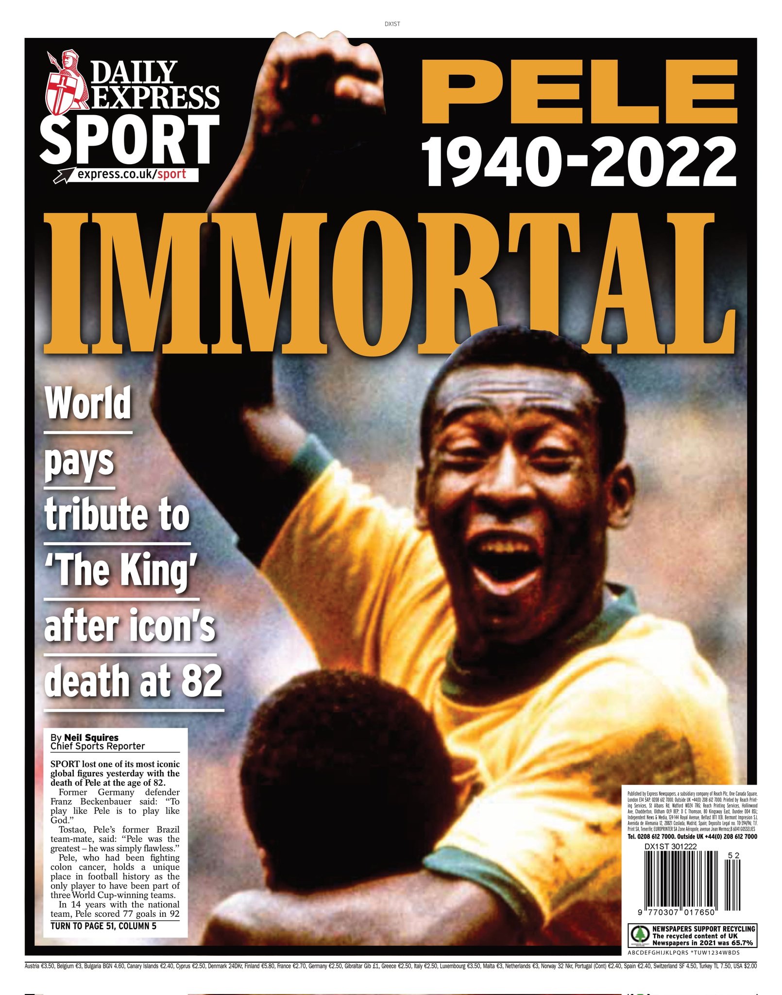 La prensa mundial despide a «O Rei» Pelé copando todas sus portadas